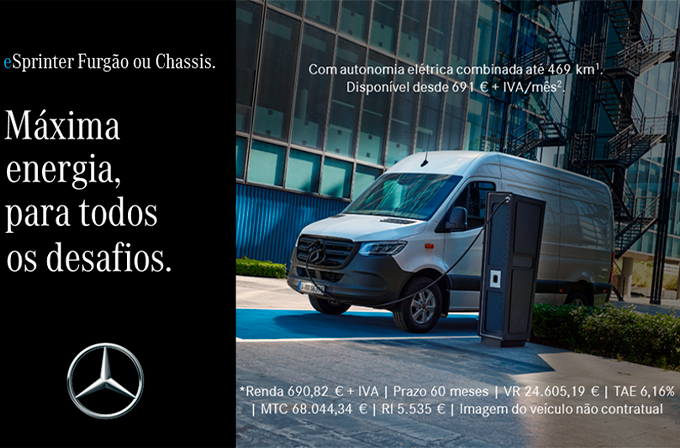 O icónico e inovador eSprinter Furgão está preparado para ir mais longe, apoiando todos aqueles que ambicionam alcançar novos patamares nos seus negócios, com o máximo desempenho. Já o robusto eSprinter Chassis revela-se como a solução de transporte 100% elétrica adequada a atividades específicas, sobretudo relacionadas com serviços, indústria e construção.